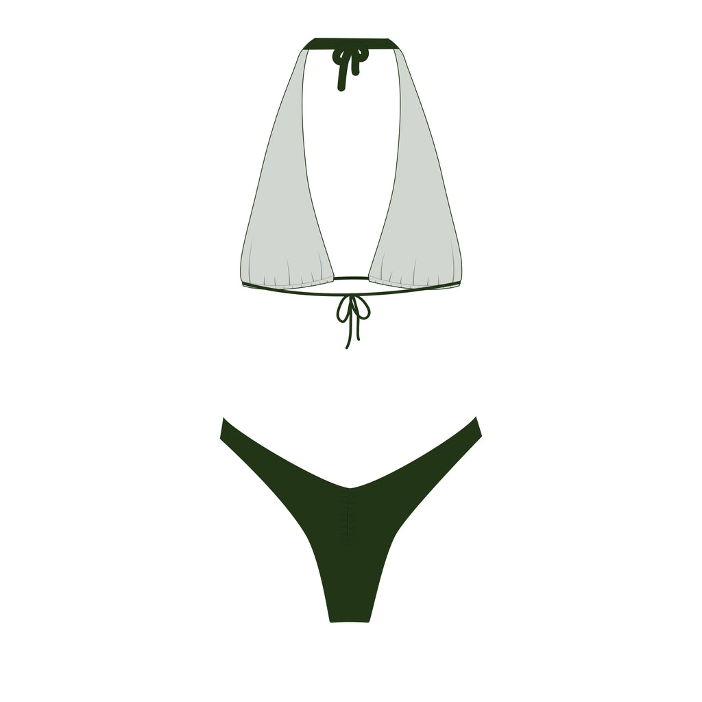Estilo versátil con esencia natural. El bikini GAIA nace de un tejido deadstock del 2022 que, tras años guardado, cobra nueva vida en esta edición limitada. Su top de corte halter con tiras ajustables ofrece soporte y comodidad, mientras que el bottom de acabado limpio y detalle fruncido posterior realza la figura con sutileza. Una pieza creada para moverse contigo, celebrar tus curvas y conectar con la belleza de lo simple.