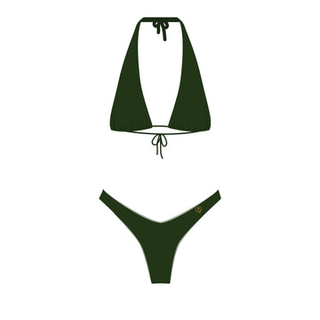 Estilo versátil con esencia natural. El bikini GAIA nace de un tejido deadstock del 2022 que, tras años guardado, cobra nueva vida en esta edición limitada. Su top de corte halter con tiras ajustables ofrece soporte y comodidad, mientras que el bottom de acabado limpio y detalle fruncido posterior realza la figura con sutileza. Una pieza creada para moverse contigo, celebrar tus curvas y conectar con la belleza de lo simple.