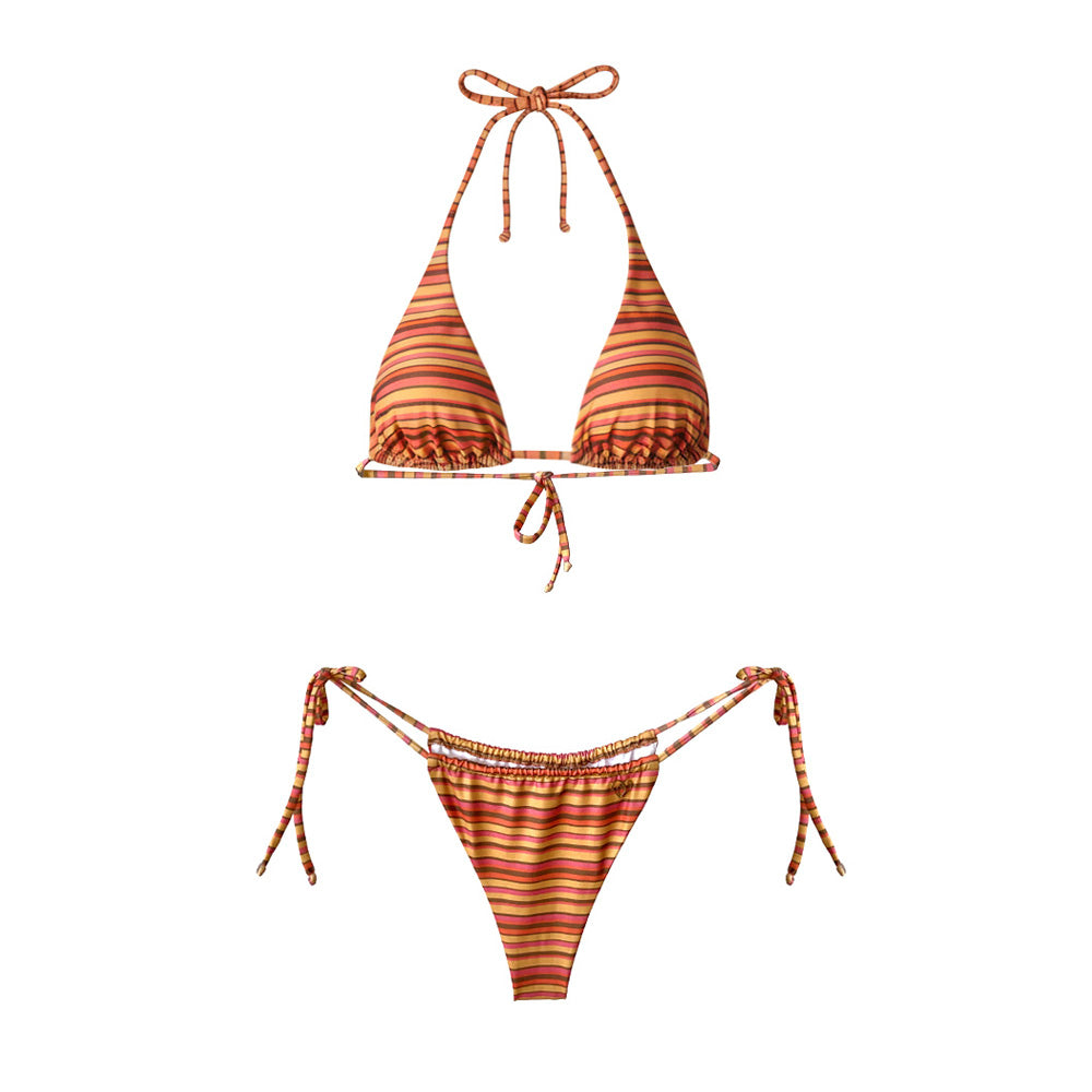 El Top Dolly, de corte triángulo halter con tiras ajustables, realza la figura con un balance perfecto entre soporte y libertad. Su print original, diseñado para la colección The 70’s Doll, evoca el movimiento, la alegría y la frescura de una época llena de expresión y autenticidad. Ideal para combinar con el Bottom Dolly o llevar como top para un look veraniego y despreocupado.